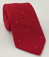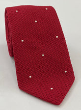 See DetailsRed Grenadine Grossa with White (Hand Sewn) Pin Dots Silk Tie #GGDT-1 (1)100% Grenadine Silk woven in Italy. The pin dots are sewn by hand and cover the front of the tie only. Please note that it takes many hours to sew the pin dots by hand and we are probably the only tie maker in the...Estimated number that can be made: 1 item(s)