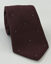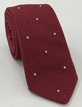 See DetailsDark Red Grenadine Grossa with Silver (Hand Sewn) Pin Dots Silk Tie #GGDT-2 (2)100% Grenadine Silk woven in Italy. The pin dots are sewn by hand and cover the front of the tie only. Please note that it takes many hours to sew the pin dots by hand and we are probably the only tie maker in the...Estimated number that can be made: 1 item(s)