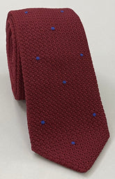 See DetailsDark Red Grenadine Grossa with Blue (Hand Sewn) Pin Dots Silk Tie GGDT-2 (4)100% Grenadine Silk woven in Italy. The pin dots are sewn by hand and cover the front of the tie only. Please note that it takes many hours to sew the pin dots by hand and we are probably the only tie maker in the...Estimated number that can be made: 1 item(s)