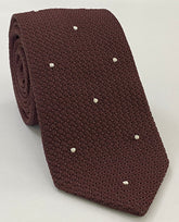 See DetailsBurgundy Grenadine Grossa with Brown (Hand Sewn) Pin Dots Silk Tie #GGDT-3 (30)100% Grenadine Silk woven in Italy. The pin dots are sewn by hand and cover the front of the tie only. Please note that it takes many hours to sew the pin dots by hand and we are probably the only tie maker in the...Out Of Stock