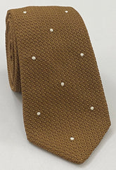 See DetailsChocolate Grenadine Grossa with Gold (Hand Sewn) Pin Dots Silk Tie #GGDT-4(26)100% Grenadine Silk woven in Italy.The pin dots are sewn by hand and cover the front of the tie only.Please note that it takes many hours to sew the pin dots by hand and we are probably the only tie maker in the world making...Estimated number that can be made: 1 item(s)