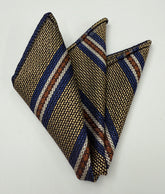 See Detailsネイビーブルー、バーントオレンジ、オフホワイトのゴールドグレナディン・フィナ&グロッサストライプ シルクポケットチーフ #6100% シルクEstimated number that can be made: 3 item(s)