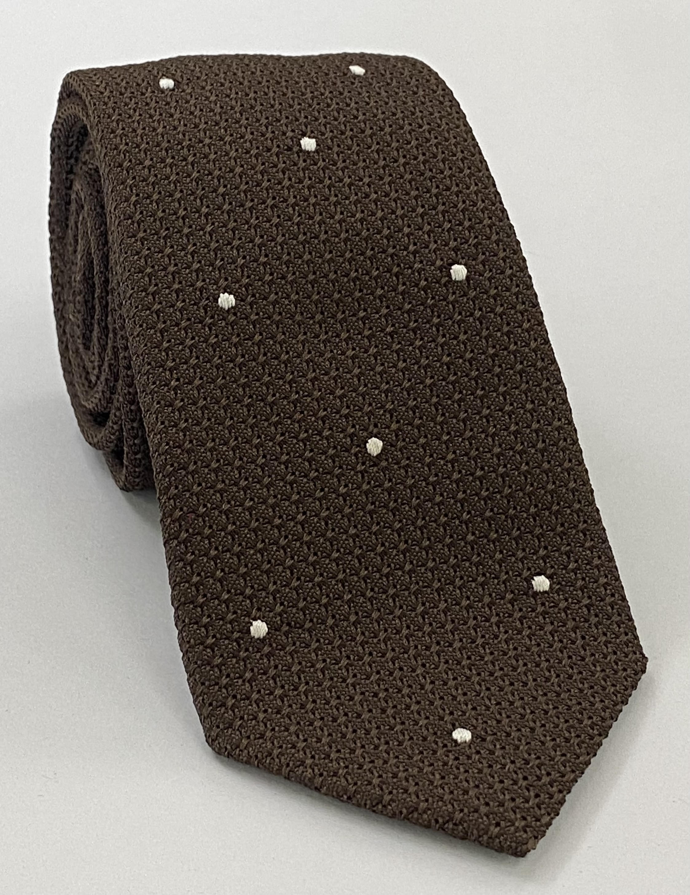 Bitter Chocolate Grenadine Grossa with White (Hand Sewn) Pin Dots Silk Tie #GGDT-6 (1)