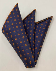 Burnt Orange on Midnight Blue Classic Flower Silk Pocket Square #FFFP-2
