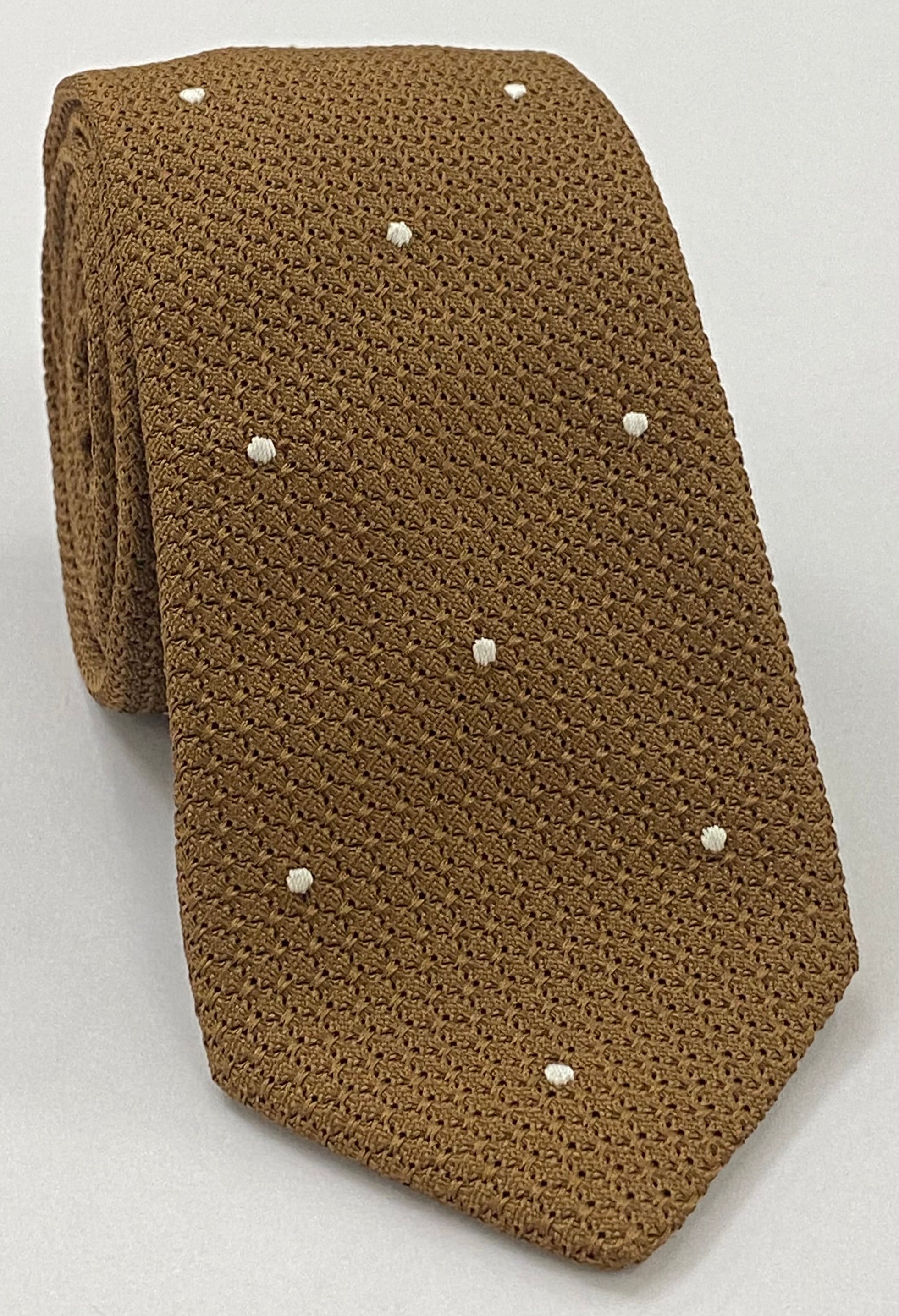 Chocolate Grenadine Grossa with White (Hand Sewn) Pin Dots Silk Tie GGDT-4(1)