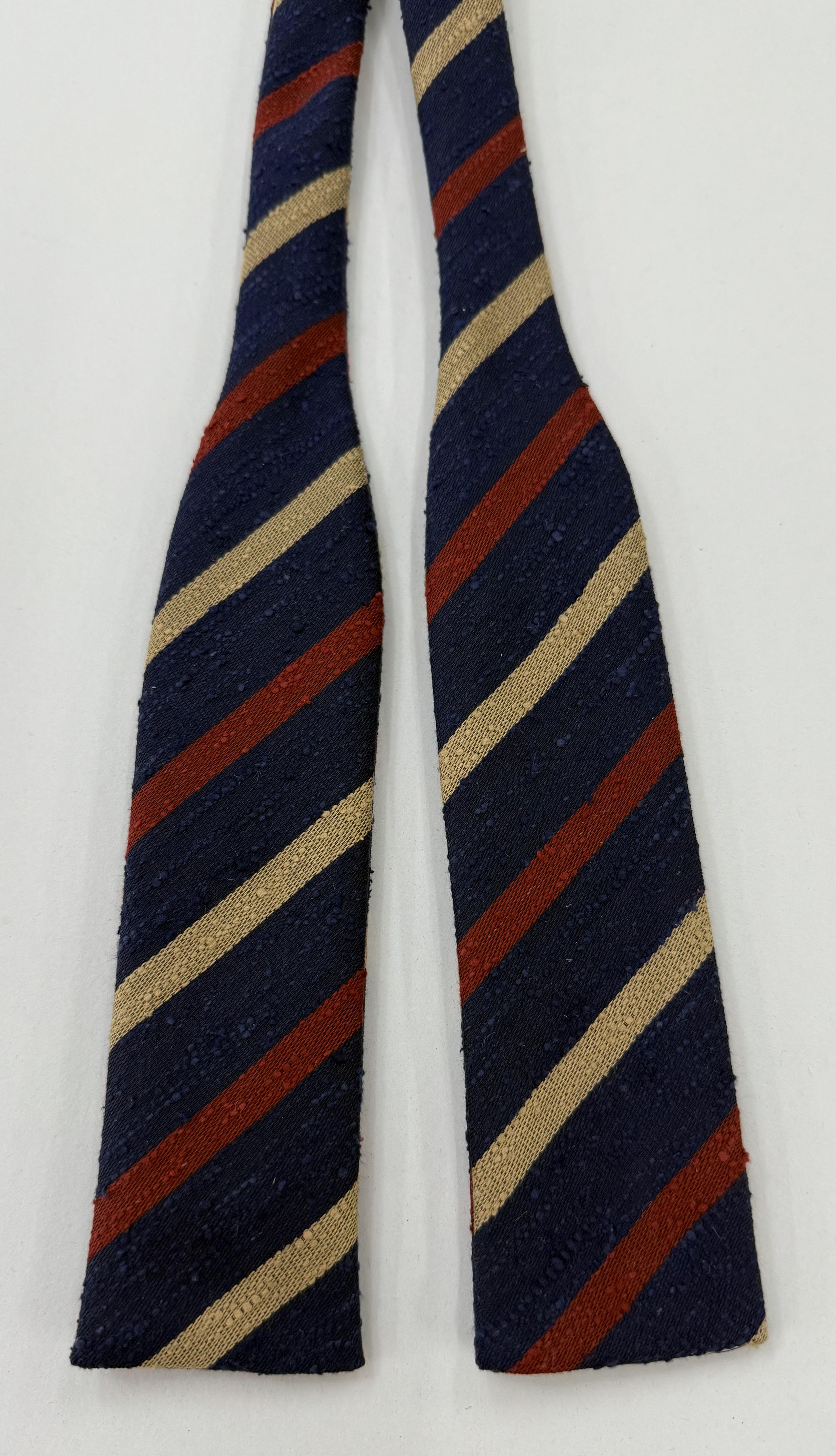 Dark Red & Cream on Dark Navy Blue Shantung Striped Silk Bow Tie SHSTBT-2
