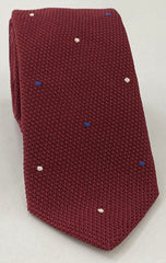 Dark Red Grenadine Grossa with White & Blue (1, 4) - Hand Sewn Pin Dots Silk Tie #GGDT-2