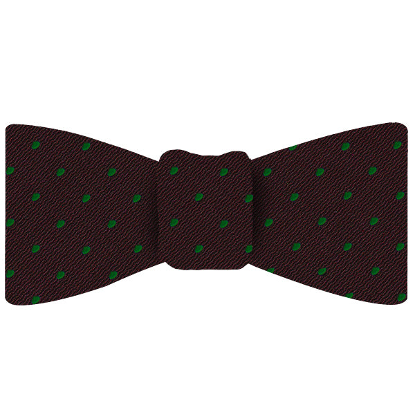 Green Dots On Burgundy Pin-Dot Silk Bow Tie #EPDBT-7