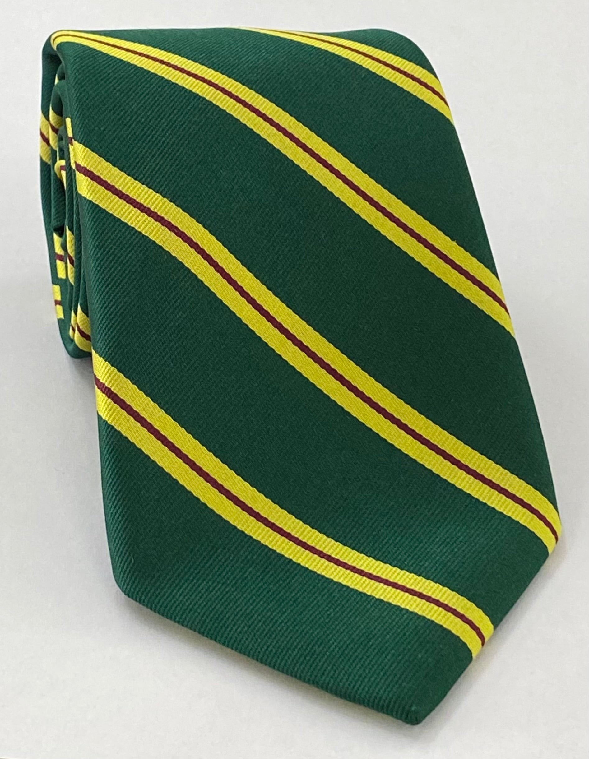 Malaya Regiment Stripe Silk Tie RGT-32 Dark Red & Corn Yellow on Forest Green