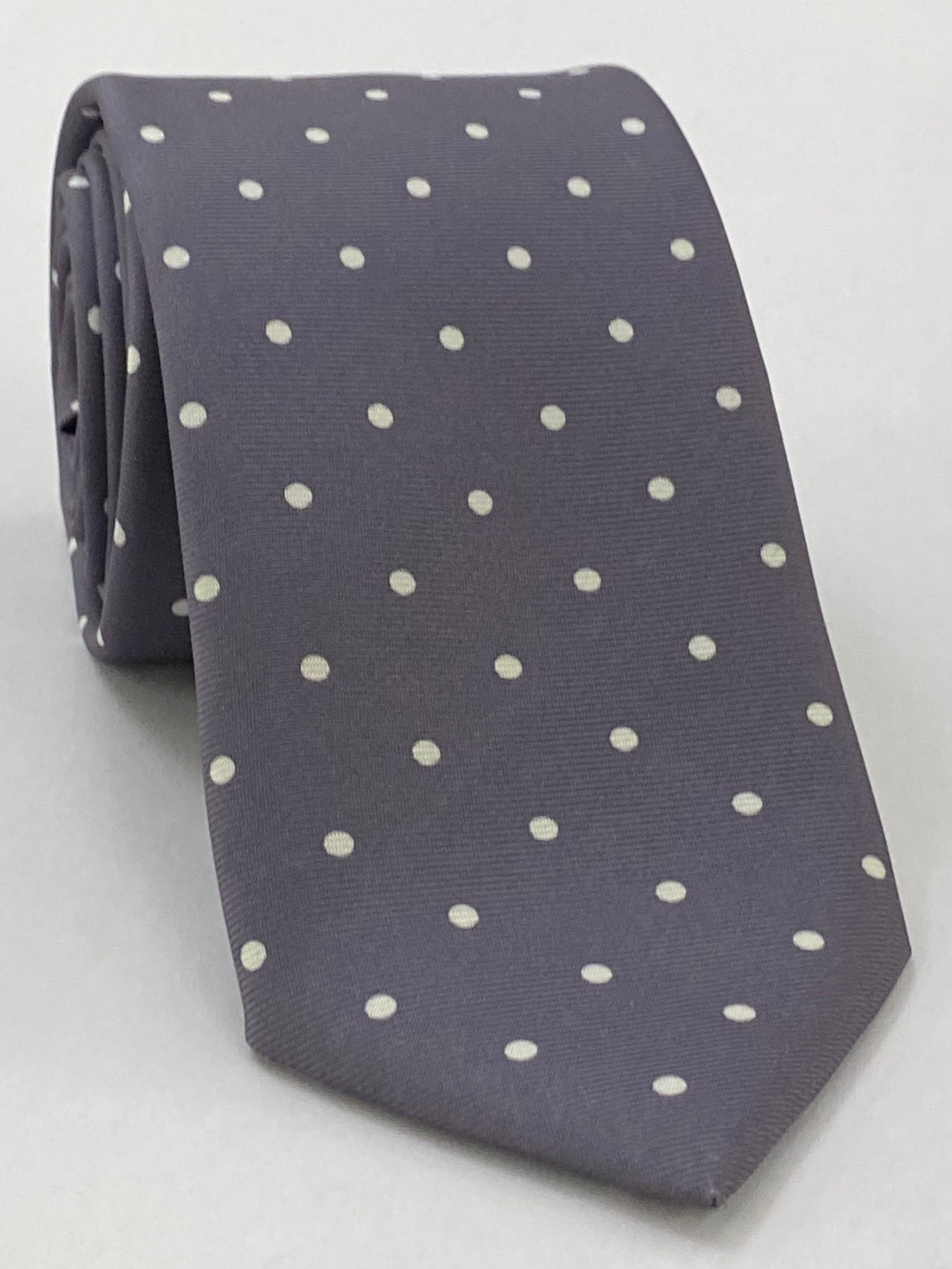 Off-White on Charcoal Gray Print Dot Silk Tie MCDT-32