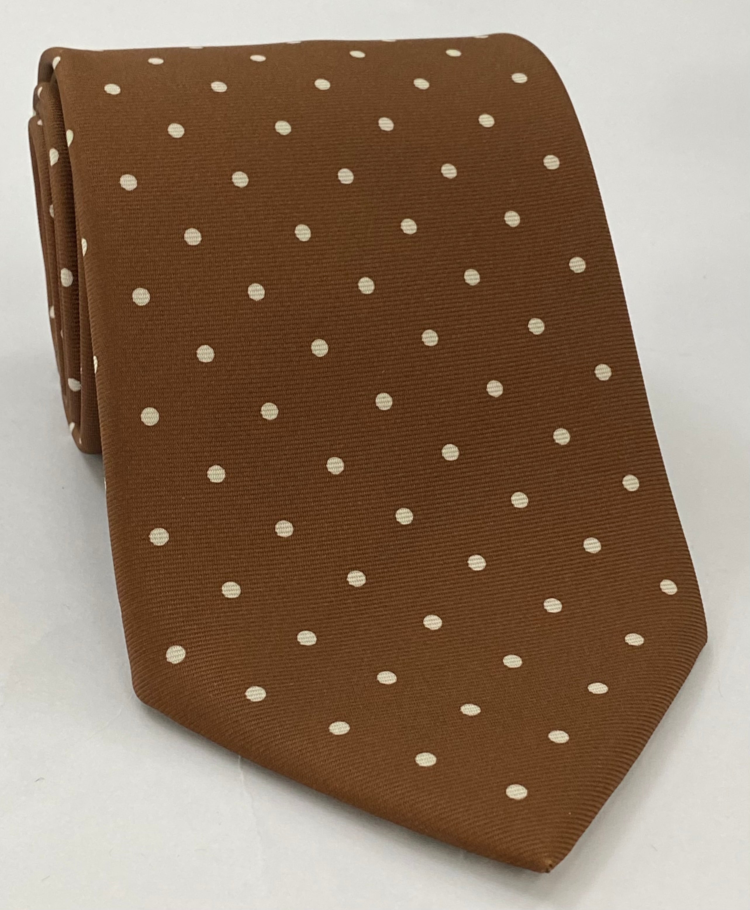 Off-White on Dark Brown Print Dot Silk Tie MCDT-44