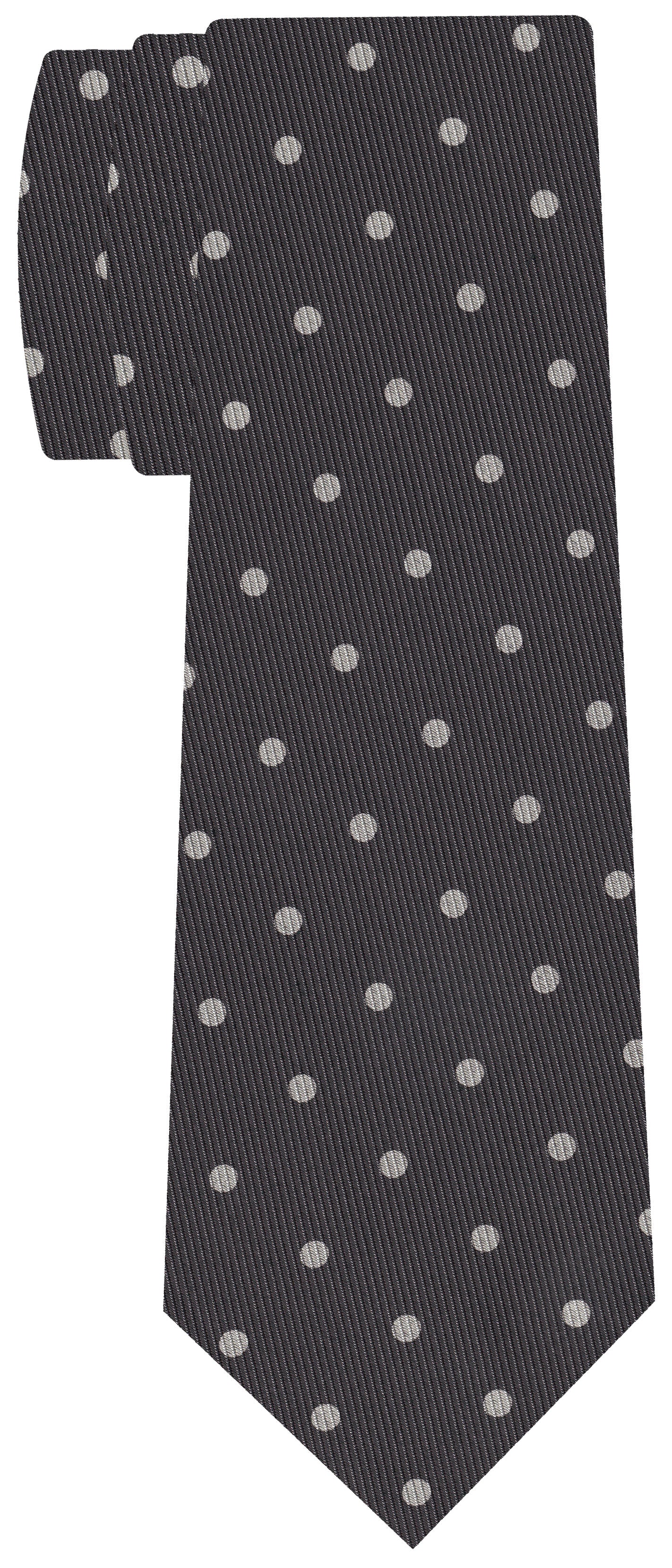 Off-White on Dark Charcoal Gray Print Dot Silk Tie MCDT-42