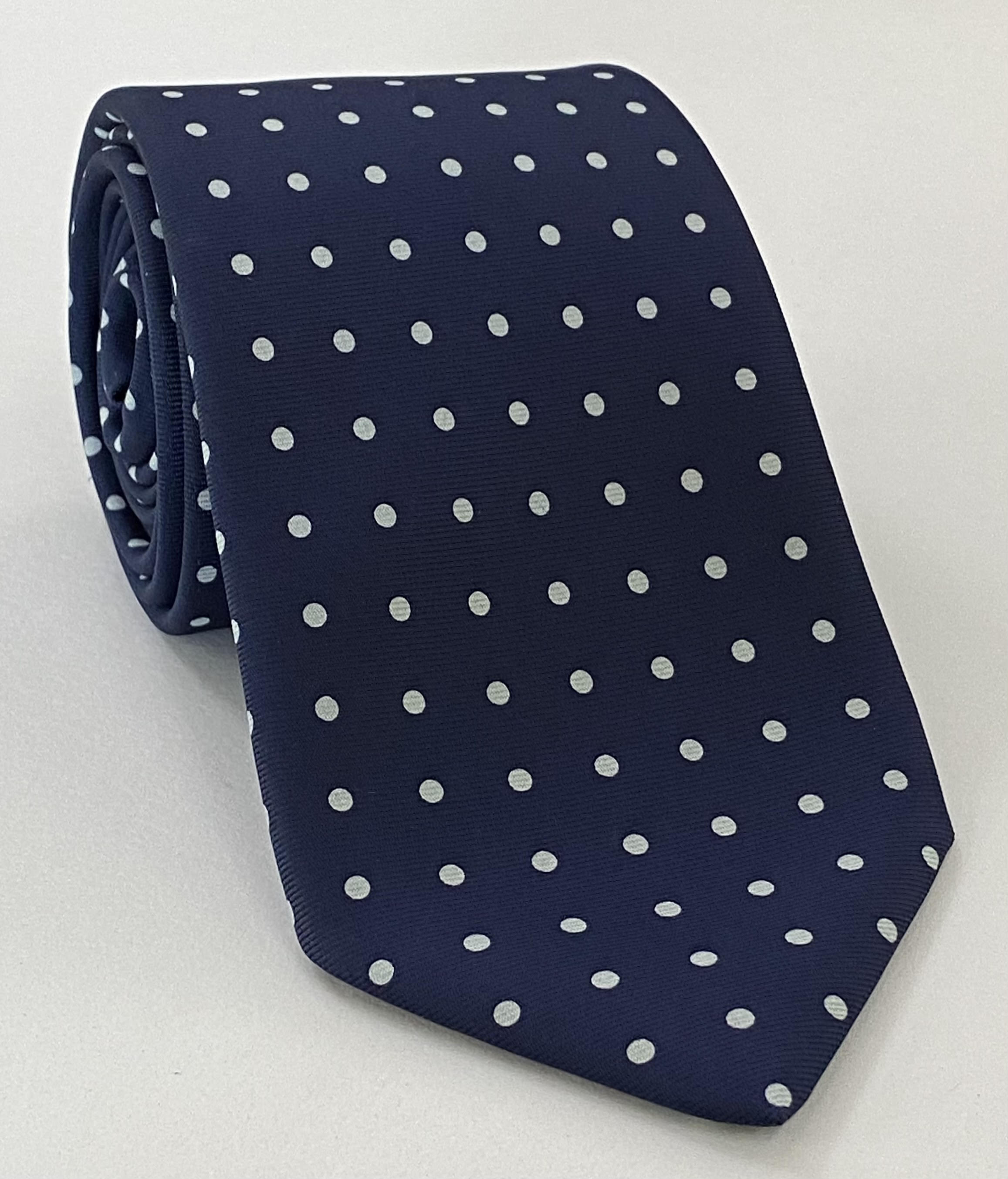 Off-White on Dark Navy Blue Macclesfield Printed Silk Tie MCDT-23