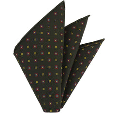 Red, Yellow & Blue on Dark Olive Green Macclesfield Pocket Square #MCP-43