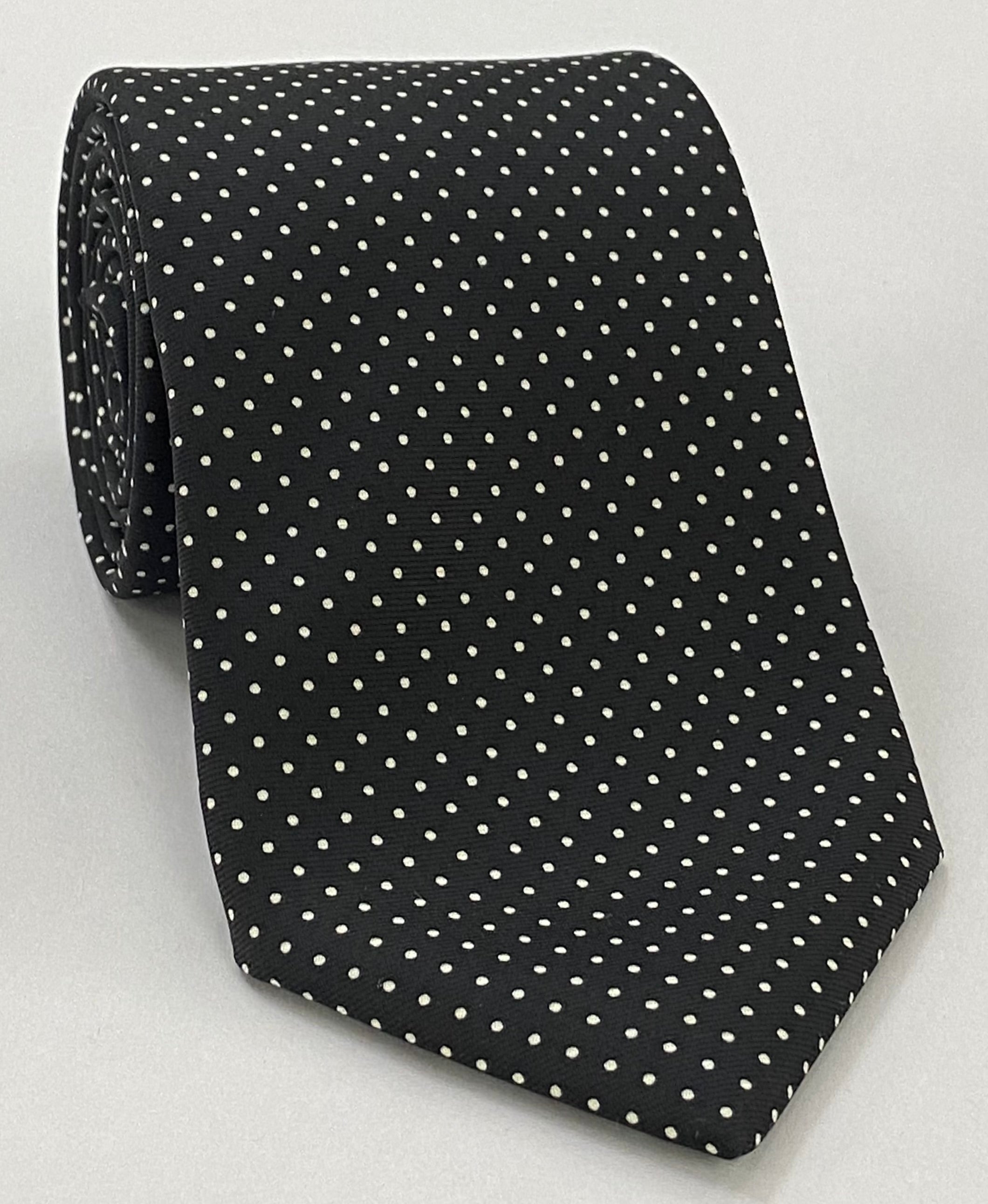 White On Black Printed Pin Dot Silk Tie MCPDT-1