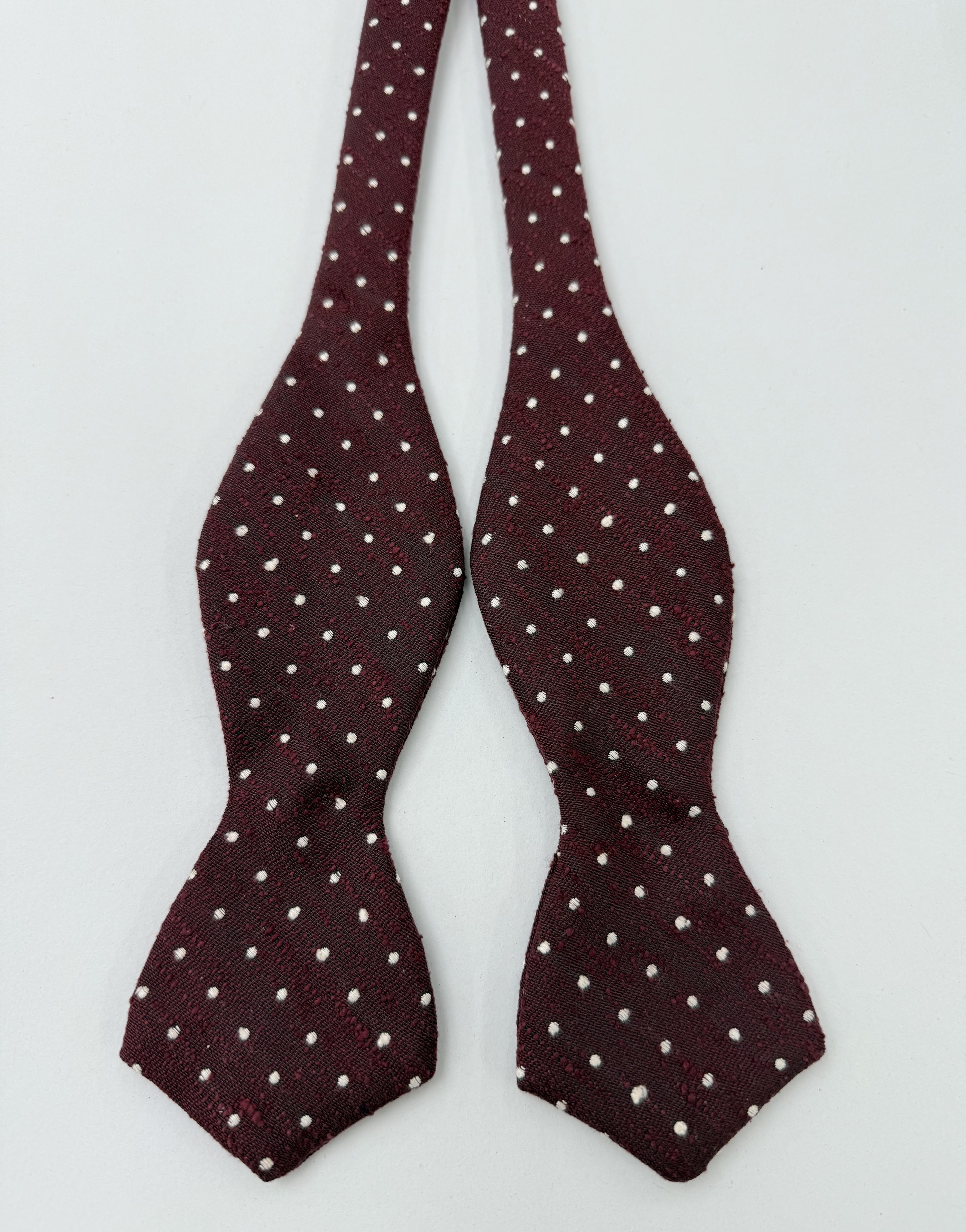 White on Burgundy Shantung Pin Dot Silk Bow Tie #SHPDBT-2
