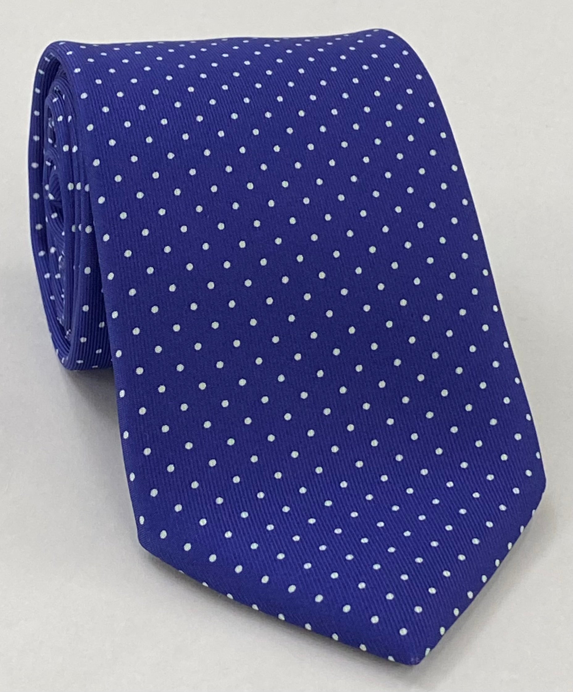 White on Purple Blue Macclesfield Print Pattern Silk Tie MCPDT-28 (MCT-482)
