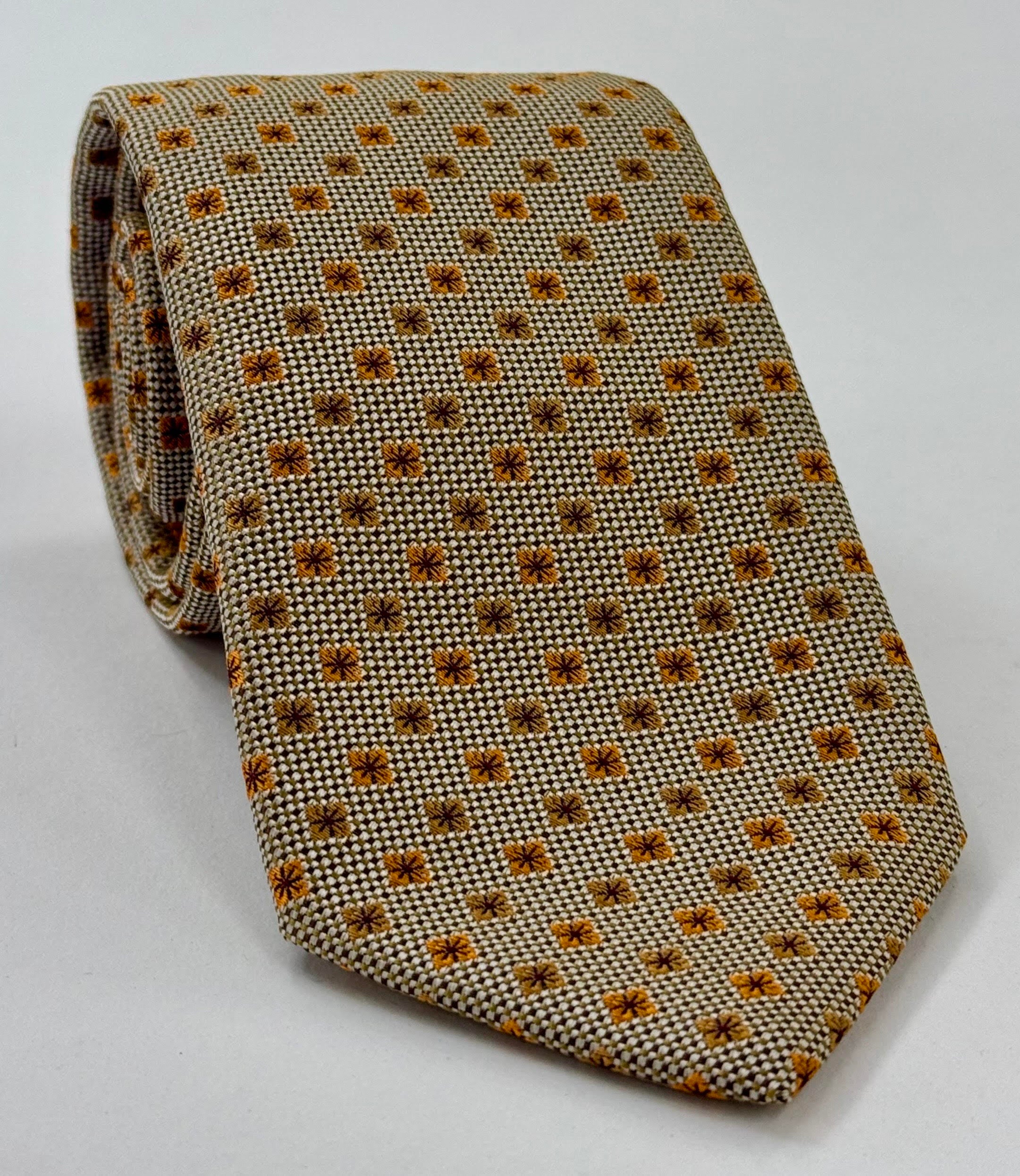 Yellow Gold, Gold, Golden-Brown & White Flower Silk Tie FT-18