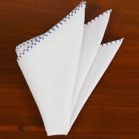 X Pattern Belgian White Linen Pocket Squares