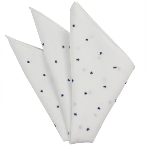 Belgian White Linen With Embroidered Star Pocket Squares (2 lines)