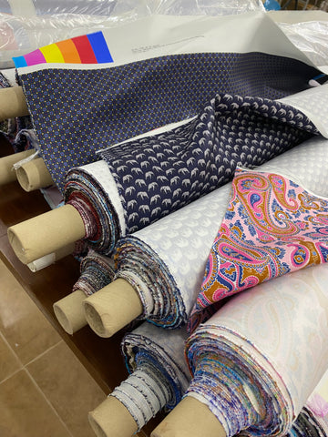 Mogador is a plain weave fabric with fine ribbs similar to faille made with a mix of silk and cotton yarns.